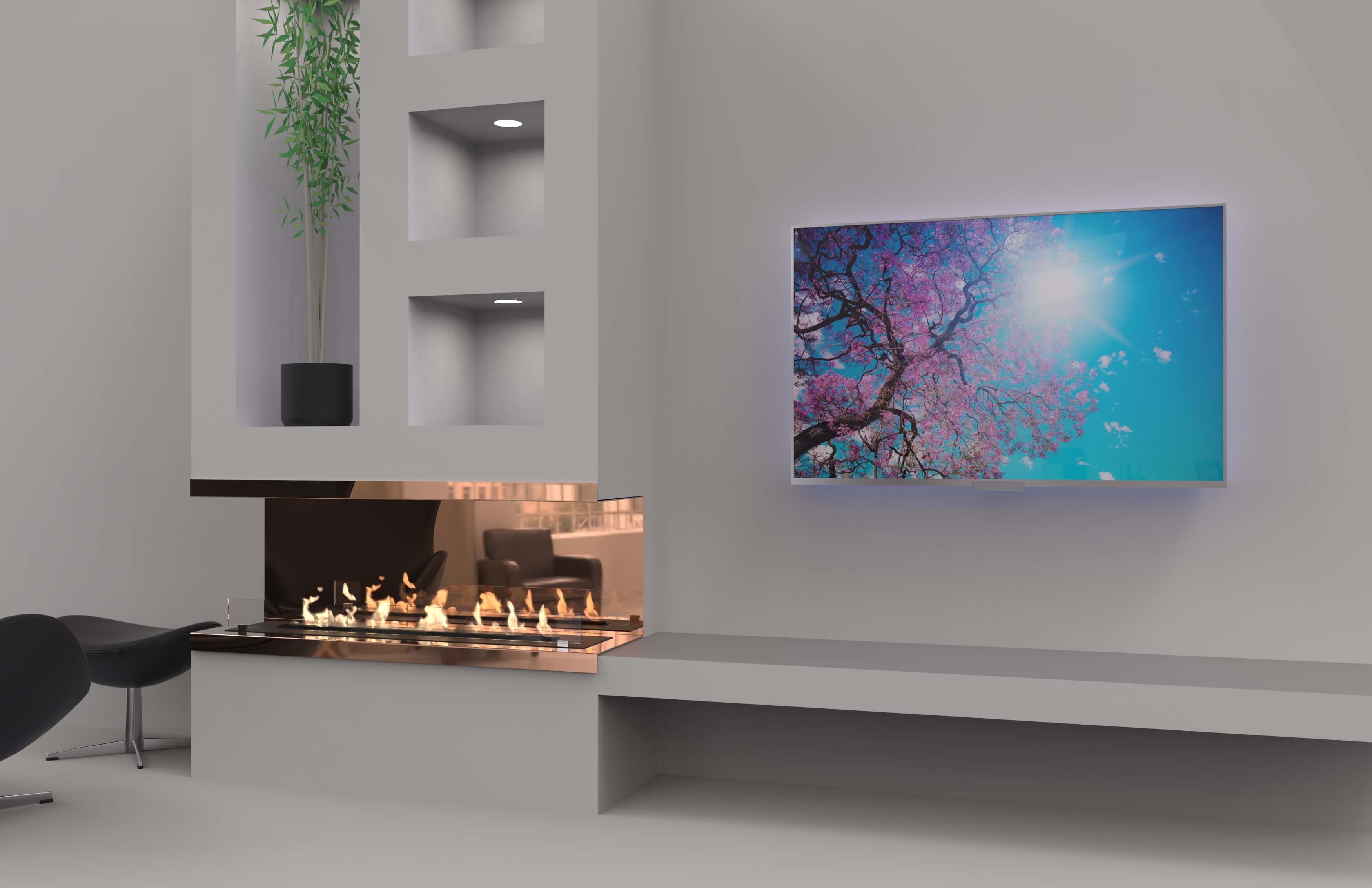 Decoflame Memphis — автоматический биокамин с дистанционным управлением. Встраивается в стену, колонну или в любую вертикальную конструкцию, которая делит пространство на зоны. Внутривенные стенки биокамина служат как дополнительной изоляцией стены, так и ее внешней отделкой.